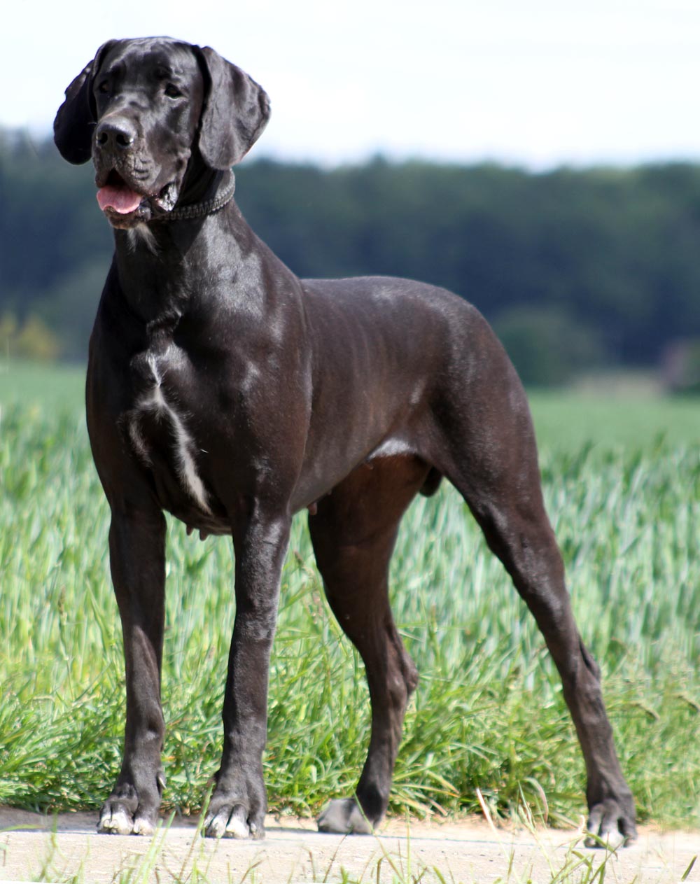 Unsere Diamond-Rose ist eine tief schwarze, wunderschöne Hündin mit kleinem, unauffälligem, schwach weißem Abzeichen. Sie ist groß, langbeinig mit kräftigem Knochenbau und starker, weiblicher Ausstrahlung - eben ein richtiges Powergirl!