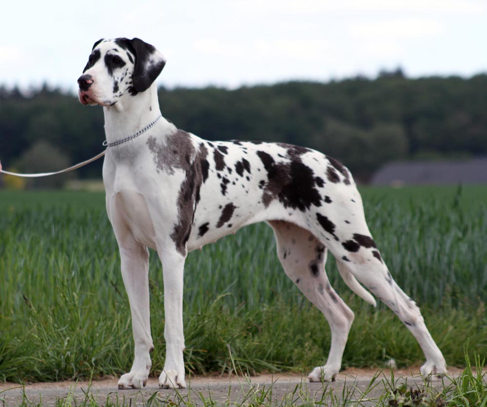 Die derzeit jüngste unserer Familie ist Easy. Sie ist eine gefleckte Hündin mit sehr reiner Grundfarbe und sehr schöner Fleckung.