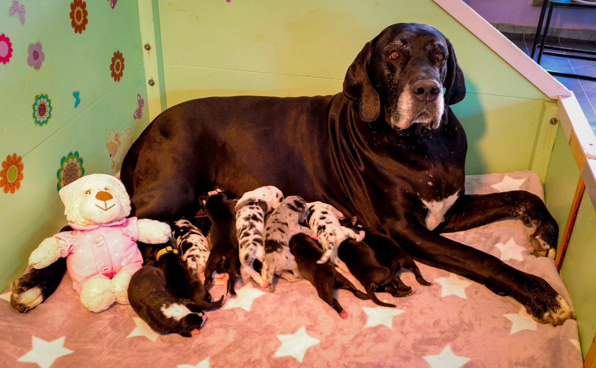 Mama Bibbi kümmert sich mit viel Liebe und Aufmerksamkeit um ihre kleine Meute und zusammen mit Papa Wyatt Earp with Red Ribbon,